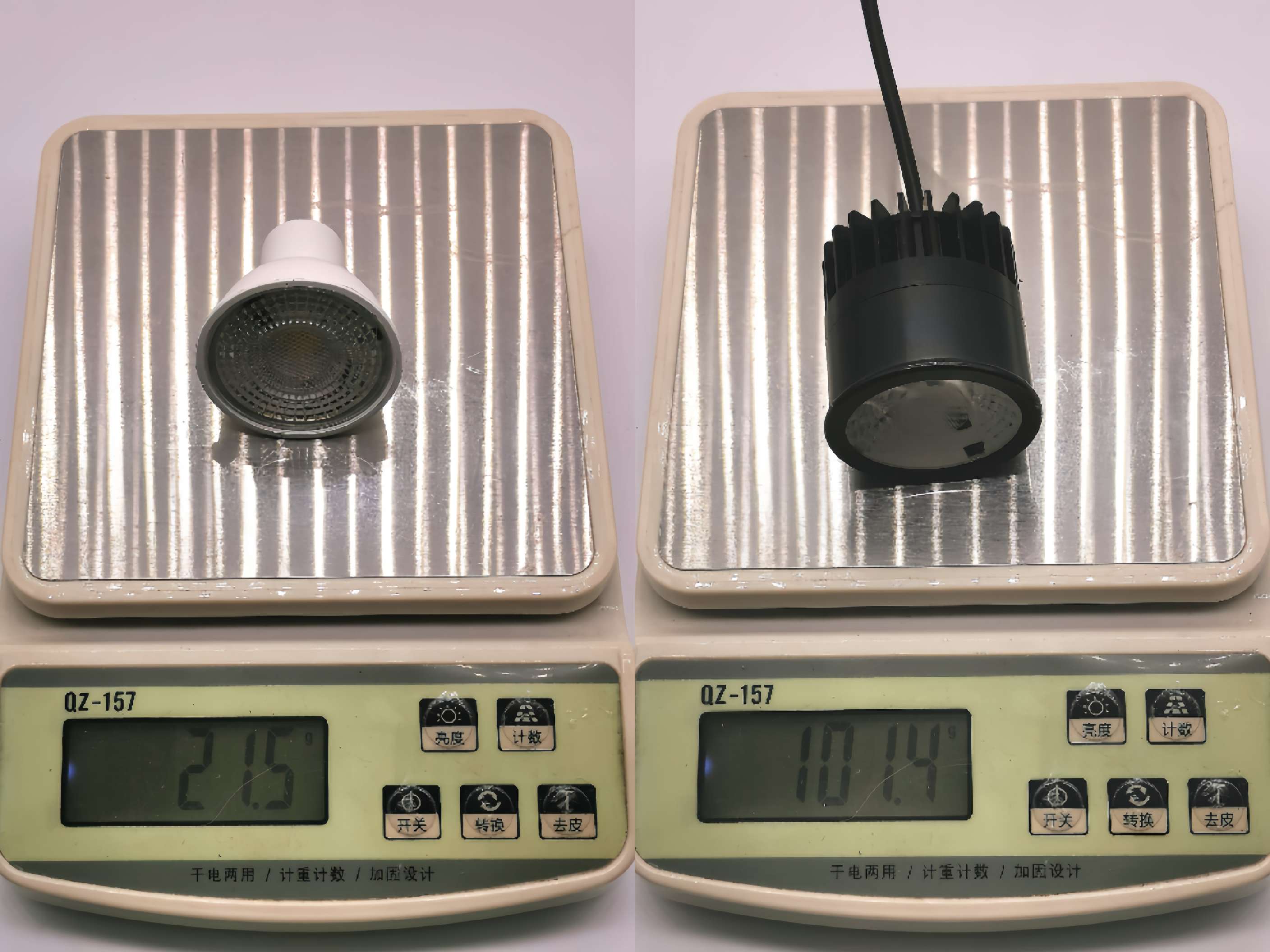 GU10 LED module:It is made of Pure Aluminum 1070 AL,which is very heavy. And its weight is 101.4g.